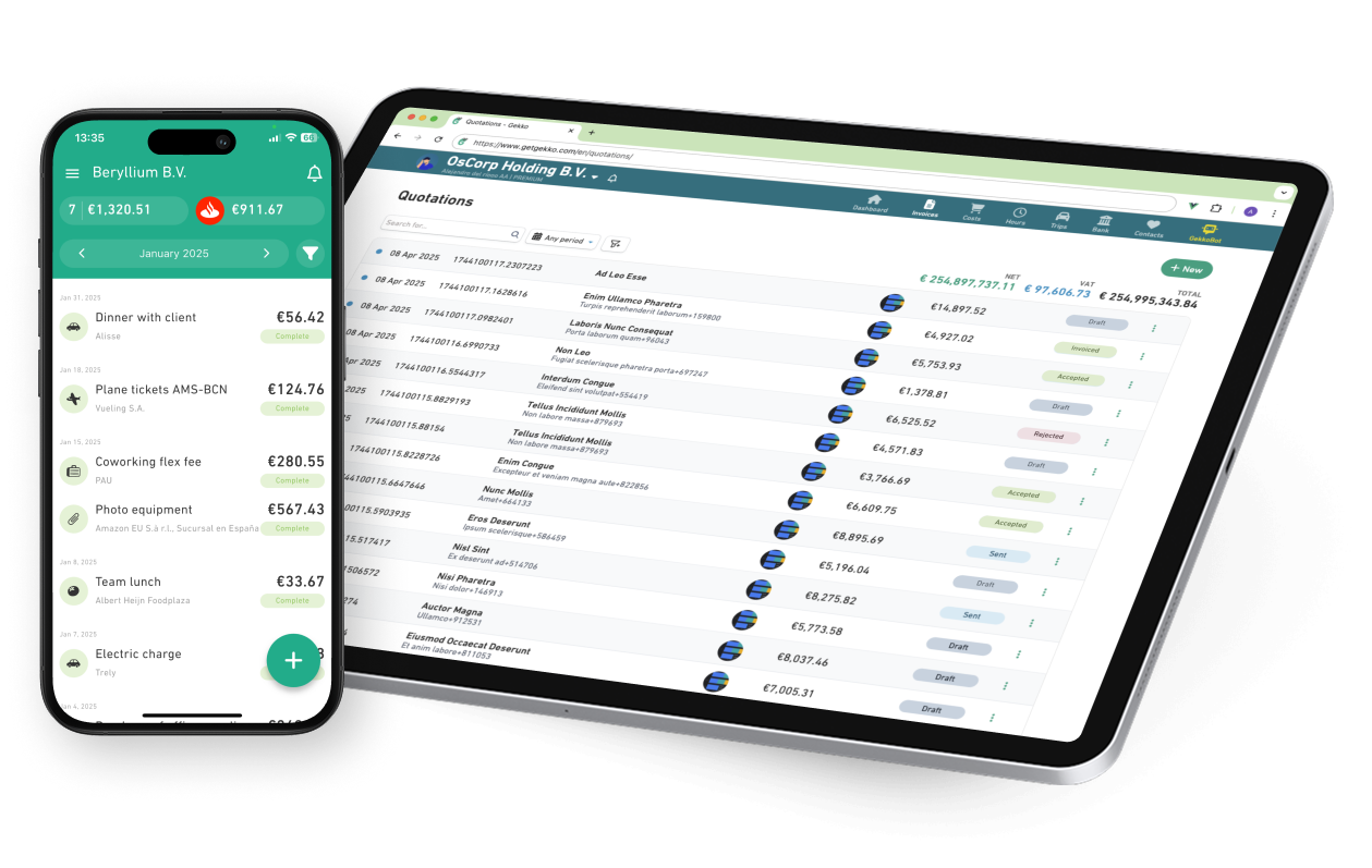 Using the Gekko quotation tooling is a great way to show you are a professional. It is the perfect way to communicate terms and agreements to prospective clients and to close a deal.